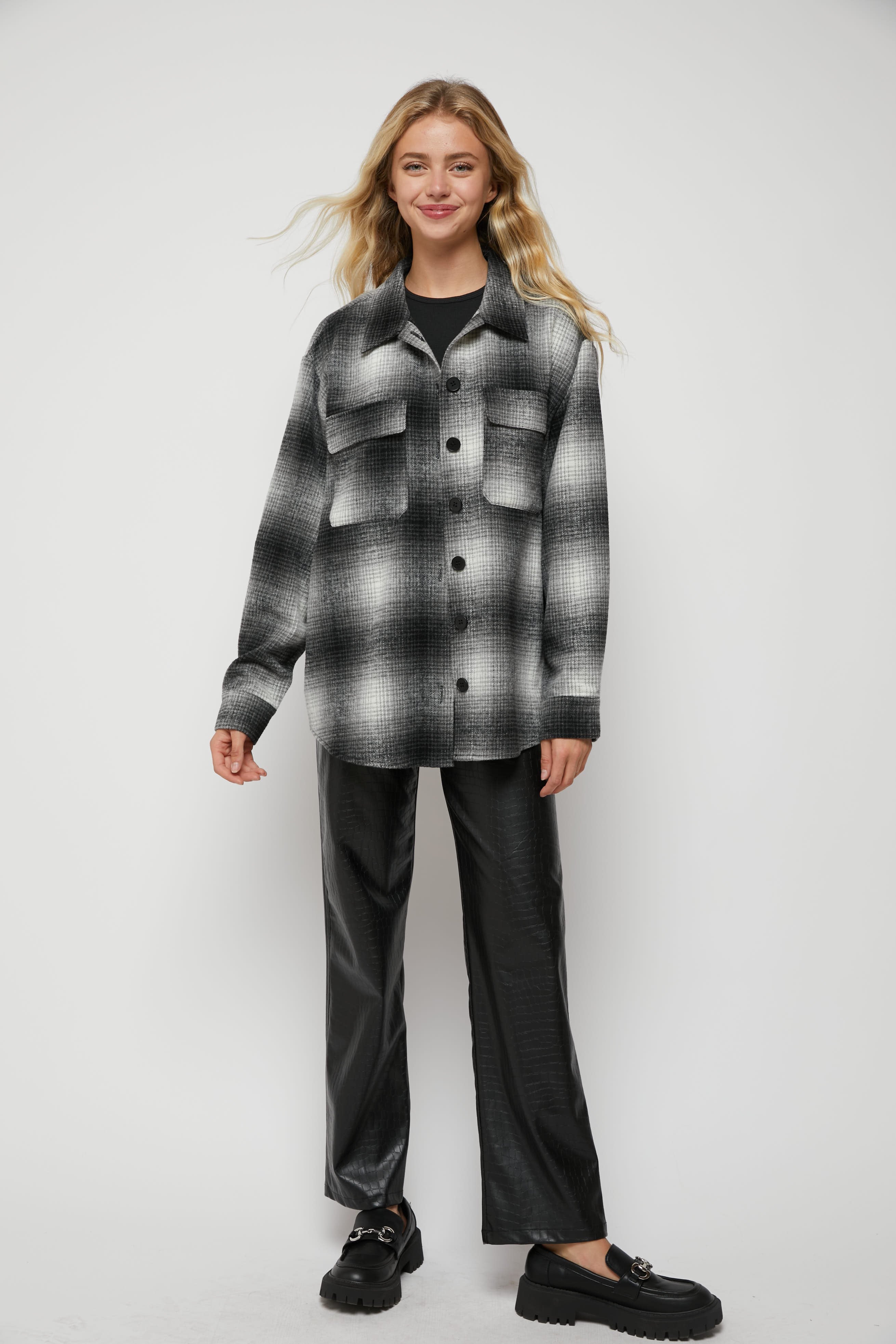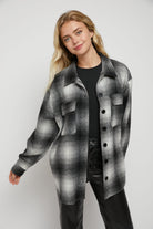 An easy throw-on layer with instant attitude, the Midnight Mood Shacket blends cozy texture with moody plaid perfection. Soft brushed fabric and a relaxed fit make it your grab-and-go essential for errands, coffee runs, or late-night plans.