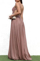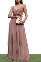 The Mocha Whisper Lace Maxi Dress is the definition of timeless romance. Featuring a delicate lace bodice, open back, and flowy chiffon skirt, this piece is perfect for weddings, bridesmaids, or elegant evenings.